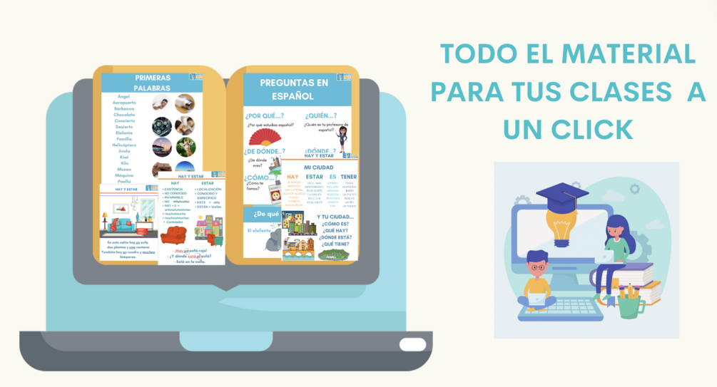 - En el Pack de infografías para alumnos que tienen un nivel absoluto de desconocimiento del español encontrarás 12 infografías con las que enseñar durante las primeras sesiones, además de una guía rápida sobre las principales preguntas y respuestas sobre este tipo de clases.
